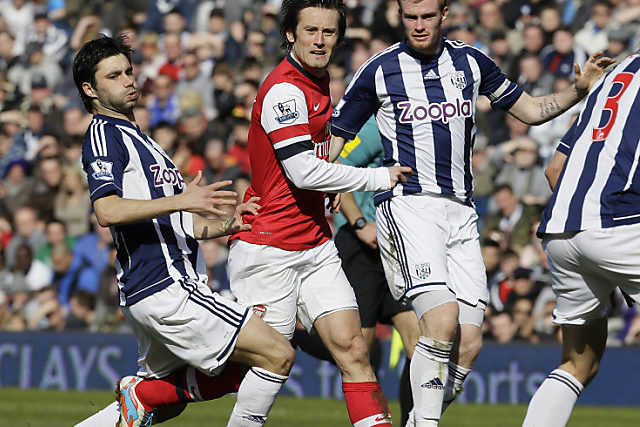 Dank der ersten beiden Saisontore des Ex-Dortmunders Tomas Rosicky gewannen die Londoner bei West Bromwich Albion 2:1 und eroberten zumindest bis Sonntag Platz 4 von Chelsea zurück.
