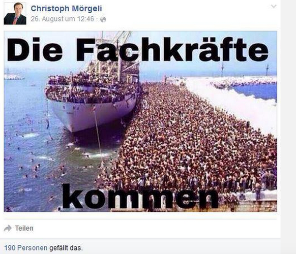 Natürlich: Das Bild ist auf menschlicher Ebene widerlich, auf inhaltlicher Ebene falsch und auf wirtschaftspolitischer Ebene irreführend – und es rückt den SVP-Politiker in die Nähe der deutschen Rechtsaussen-Partei NPD. Das ist aber im Grunde genommen egal, denn: Er verstösst nicht gegen die geltende Rassismusgesetzgebung. Und solange das nicht der Fall ist, halte ich das öffentliche Korrektiv, das sich in der kollektiven Empörung über Mörgelis Facebook-Verhalten entladen hat, für sehr viel zielführender.