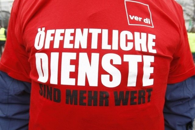 An der ersten Warnstreikwelle im öffentlichen Dienst haben sich am Montag nach Angaben der Dienstleistungsgewerkschaft ver.di 10’000 Beschäftigte beteiligt. Die Warnstreiks in Hessen, Rheinland-Pfalz und im Saarland bildeten den Auftakt einer Protestwoche.