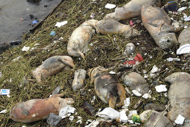 Bei den toten Tieren handelt es sich sowohl um Ferkel als auch um ausgewachsene Schweine, wie die Behörden am Montag mitteilten. Berichten zufolge könnten Bauern in der flussaufwärts gelegenen Provinz Zhejiang die an einer Krankheit verendeten Tiere in den Fluss geworfen haben.