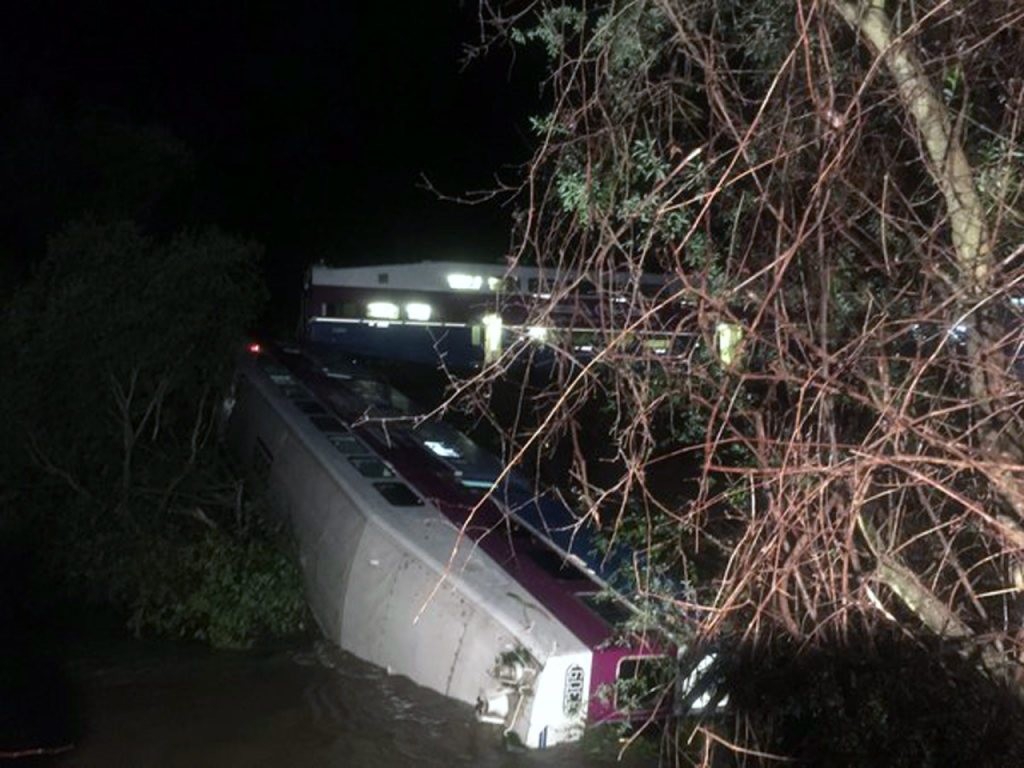 Zehn Menschen seien leicht verletzt worden, vier weitere schwer, aber nicht lebensbedrohlich. Laut Medienberichten waren in dem Zug insgesamt 214 Menschen unterwegs. Sie seien alle geborgen worden. Die Unglücksursache war demnach ein umgestürzter Baum auf den Gleisen.