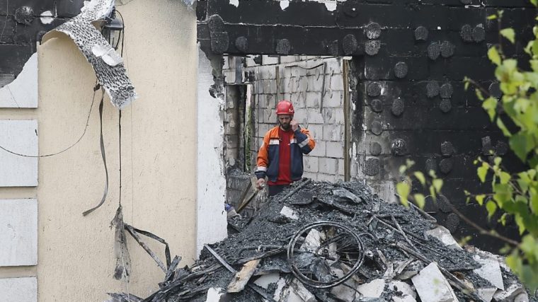 Die Brandursache war unklar, doch vermutete ein Experte, das Feuer sei durch ein explodierendes Fernsehgerät ausgelöst worden. Präsident Petro Poroschenko wurde über das Unglück informiert, wie die Regierung mitteilte.