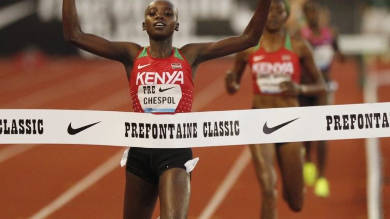 Chespol, die im vergangenen Jahr im polnischen Bydgoszcz U20-Weltmeisterin über 3000 m Steeple geworden war, verbesserte im US-Bundesstaat Oregon ihre persönliche Bestzeit und damit den U20-Weltrekord um fast sieben Sekunden. Anfang Mai beim Auftakt der Diamond-League-Saison in Doha war die 18-Jährige in 9:05,70 Vierte geworden.