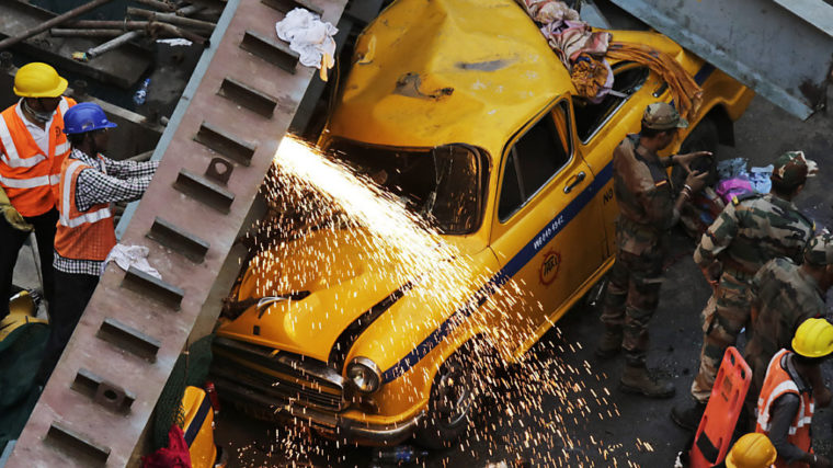 In der indischen Metropole Kolkata (Kalkutta) ist eine halb fertige Brücke eingestürzt und hat mindestens 18 Menschen getötet. Mindestens 60 wurden verletzt, wie die Polizei in der ostindischen Stadt am Donnerstag mitteilte.