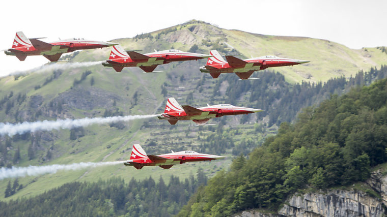Die Fliegerstaffel trat aber nur in einer Fünfer- statt einer Sechserformation auf, wie das Departement für Verteidigung, Bevölkerungsschutz und Sport (VBS) am Samstag mitteilte. Der zweitägige Anlass sei trotz des schlechten Wetters ohne Zwischenfälle verlaufen.