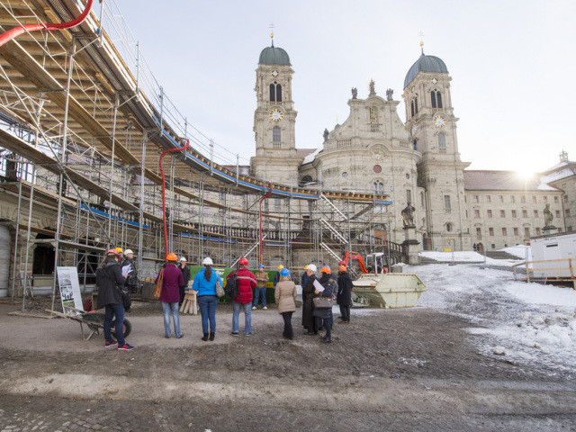 Auf dem zweitgrössten Kirchenvorplatz Europas, dem Klosterplatz in Einsiedeln SZ, hat die Sanierung der halbkreisförmigen begehbaren Arkaden begonnen. Sie dauert fünf Jahre und kostet 6,4 Millionen Franken.