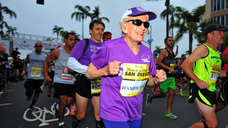Als Harriette Thomson am Sonntag im lilafarbenen Laufshirt und blauer Laufhose die Ziellinie in San Diego in Kalifornien überquerte, war sie die älteste Frau, die jemals einen Marathon absolvierte. Sie fühle sich «ein wenig steif», sagte sie ihrer Heimatzeitung, dem «Charlotte Observer».