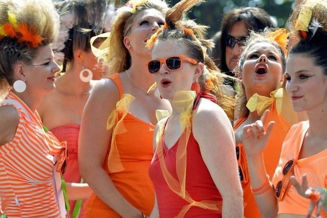 In der Menschenmenge entlang der zwei Kilometer langen Umzugsroute liess sich, was die Bekleidung betrifft, kein eindeutiger Trend feststellen. Sehr viele trugen Alltagskleidung. Andere zwängten sich in neonfarbene Ganzkörperanzüge oder in Ministrings. Beim Schuhwerk dominierten bequeme Sneakers, aber auch High-heels und Stiefel mit Plateau-Sohlen waren auszumachen.