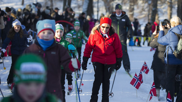 Während Harald sich wohl aus gesundheitlichen Gründen damit begnügte, über den Platz zu spazieren und sich das wuselige Treiben anzusehen, glitt seine Frau Sonja gemeinsam mit Kronprinz Haakon und Prinzessin Mette-Marit und den Enkelkindern auf Skiern über die Langlaufbahn. «Das ist wirklich unglaublich fantastisch», freute sich der König über die Ski-Party zu seinen Ehren.