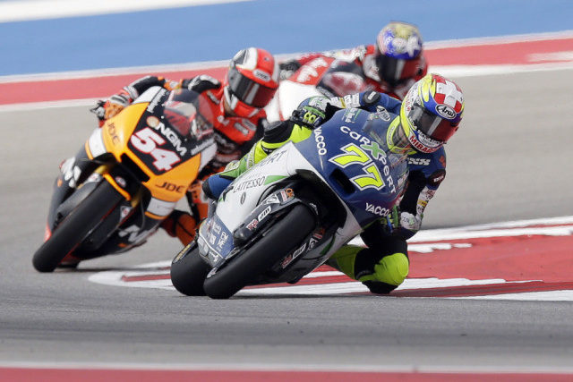 Dominique Aegerter startet am Sonntag erstmals in seiner Karriere aus der 1. Startreihe zum einem Motorrad-GP. In Austin holt er sich Rang 3 hinter WM-Leader Esteve Rabat und Johann Zarco.