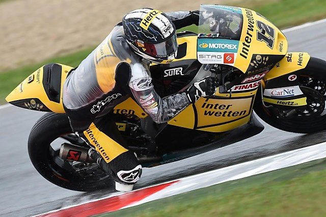 Dominique Aegerter (30.) und Tom Lüthi (15.) verlieren am verregneten ersten Trainingstag zum GP San Marino viel Zeit auf die Spitze. Bester Schweizer Moto2-Fahrer ist Randy Krummenacher als Neunter.