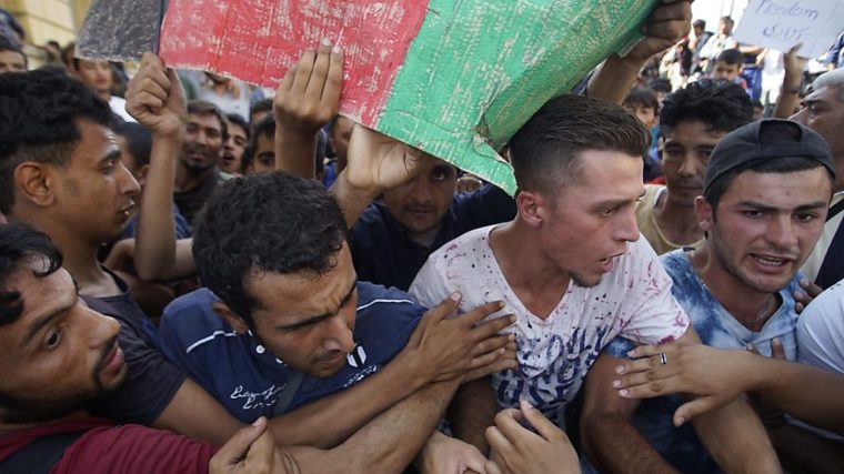 Rund 2000 Migranten skandierten Rufe wie «Freiheit, Freiheit!». Unter den Wartenden waren zahlreiche Familien mit Kindern. Sie durften das von der Polizei bewachte Bahnhofsgebäude nicht betreten, obwohl viele Zugbilletts Richtung Deutschland hatten.