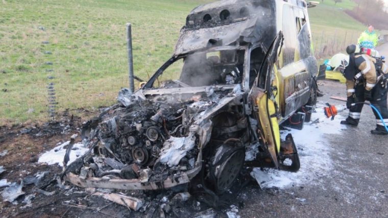 Beim Eintreffen der Feuerwehr stand das niederländische Ambulanzfahrzeug bereits in Vollbrand, wie die Baselbieter Polizei am Mittwoch mitteilte. Die Fahrzeuginsassen, zwei Sanitäter, konnten sich zuvor in Sicherheit bringen. Die Polizei geht davon aus, dass das Fahrzeug kurz vor 16.30 Uhr wegen einer technischen Ursache in Brand geriet.