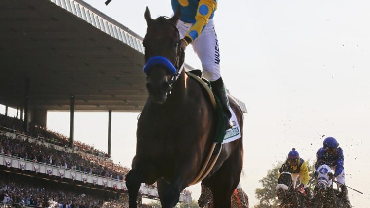 Das Warten ist zu Ende. American Pharoah hastete im Belmont-Stakes-Turfrennen zum Sieg und gewann als zwölftes Pferd die «Triple Crown».