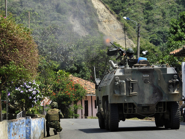 Aus Medellín seien weitere Einheiten zur Verstärkung der angegriffenen Militärs entsandt worden, erklärte General Hernán Giraldo dem Radiosender Radio Caracol. Die Kämpfe dauerten am Abend (Ortszeit) noch an.