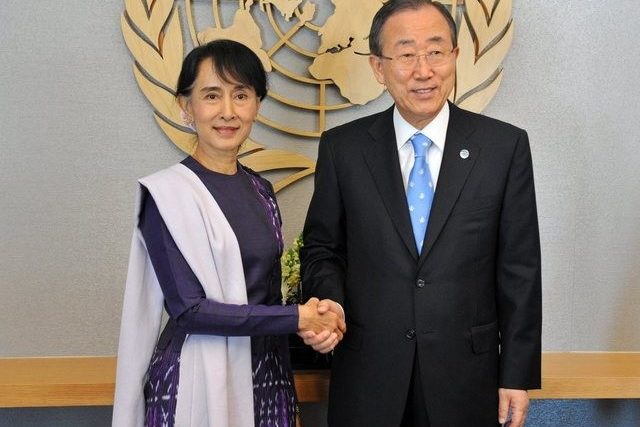 Die burmesische Friedensnobelpreisträgerin Aung San Suu Kyi ist bei ihrem rund zweiwöchigen USA-Besuch am Freitag mit UNO-Generalsekretär Ban Ki Moon zusammengetroffen. Die Vereinten Nationen unterstützten Burmas Entwicklung auf dem Weg zur Demokratie, sagte Ban bei einer Pressekonferenz in New York.