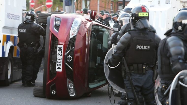 Anhänger des Oranier-Ordens zogen mit britischen Flaggen und anderen Symbolen der London-treuen Protestanten durch die Stadt. Als ihnen der Zugang ins mehrheitlich von Katholiken bewohnte Viertel Ardoyne verwehrt wurde, warfen sie Ziegelsteine und Flaschen gegen die Polizei, wie diese mitteilte. Die Polizisten versuchten, die Menge auseinander zu treiben.