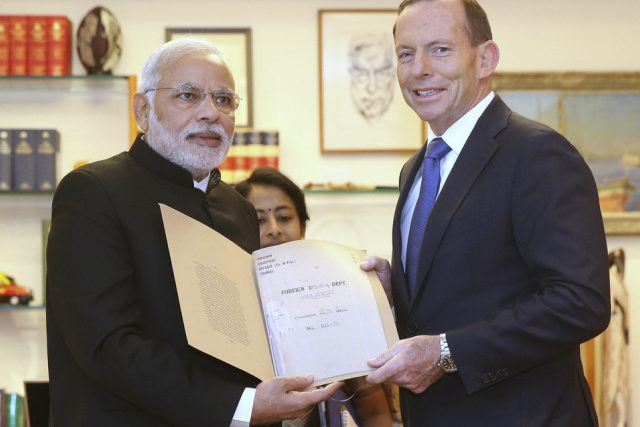 Nach der Unterzeichnung eines Freihandelsabkommens mit China strebt die australische Regierung ähnliche Vereinbarungen mit Indien an. Das Vorhaben habe für sein Land Vorrang, sagte Ministerpräsident Tony Abbott bei einem Besuch seines Amtskollegen Narendra Modi.