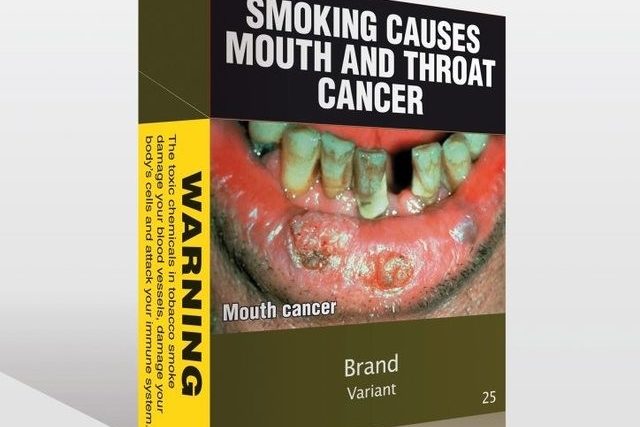 Zigarettenpackungen dürfen ab Dezember nur noch in einem oliven Einheitsdesign mit eindringlichen Gesundheitswarnungen und Fotos von Mundkrebs und erblindeten Augäpfeln erscheinen. Markenlogos und -farben sind nicht mehr erlaubt. Der Markenname darf nur noch klein auf das Päckchen gedruckt werden.
