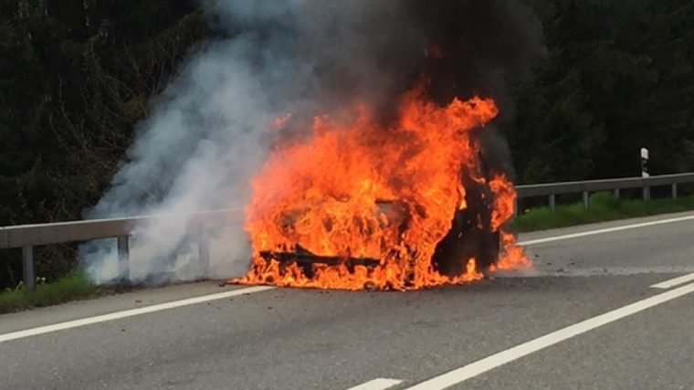 Der Vorfall ereignete sich oberhalb der Ortschaft Pian San Giacomo. Als die Insassen des Autos merkten, dass Rauch aus dem Motorraum ins Auto eindrang, hielt der Lenker an. Unmittelbar danach ging das Auto in Flammen auf. Die Feuerwehr konnte das Fahrzeug zwar löschen, aber nicht verhindern, dass es ausbrannte.