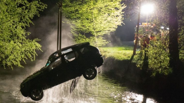 Das Unfallauto musste mit einem Pneukran aus dem Wasser gehoben werden. Deshalb wurde neben den Rettungsdiensten auch ein Transportunternehmen zum Unfallort aufgeboten.