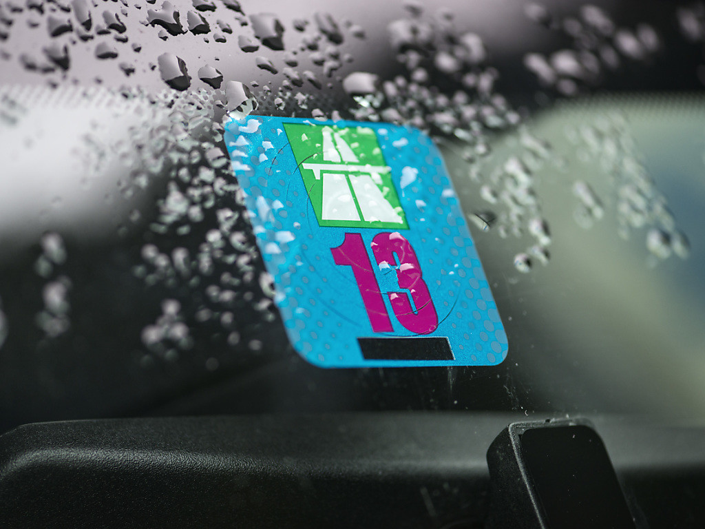 Statt die Autobahnvignette direkt an der Windschutzscheibe zu anzubringen, klebte sie der im Tessin geborene Wahl-Monegasse auf eine Klarsichtfolie. Nachdem er die Folie entlang der Konturen der Vignette sorgfältig abgeschnitten hatte, brachte er sein Werk auf der Scheibe an.
