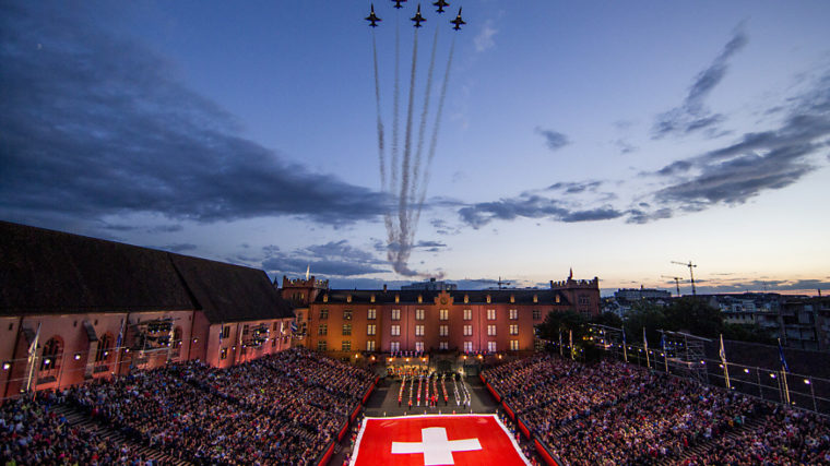 Die zehnte Ausgabe des Militärmusikfestivals BaselTattoo ist am Samstagabend mit Getöse zu Ende gegangen: Tiger-Jets der Patrouille Suisse überflogen die Derniere zweimal. Insgesamt besuchten 110’000 Personen die 15 Vorstellungen.