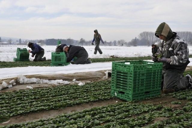 Für anstrengende, körperliche Arbeiten liessen sich nicht ausreichend Schweizerinnen und Schweizer gewinnen, schreibt der Bauernverband in einem Communiqué. Bei einer Annahme der Volksinitiative «Gegen Masseneinwanderung» würde nach Ansicht des Bauernverbandes die Versorgung des Schweizer Marktes mit regionalen Frischprodukten gefährdet.