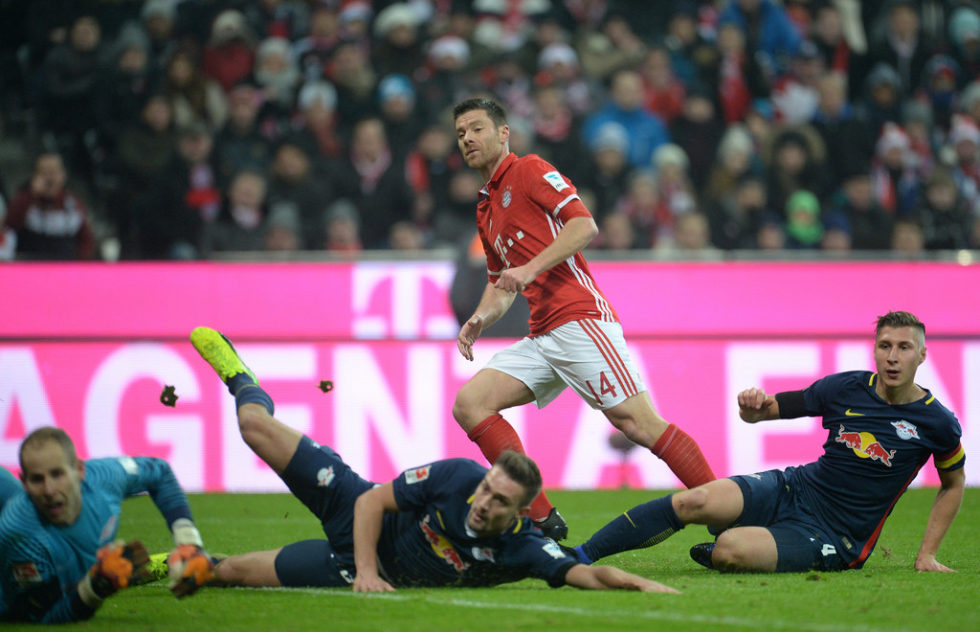 Die Bayern und Torschütze Xabi Alonso obenauf, Leipzig geschlagen am Boden.