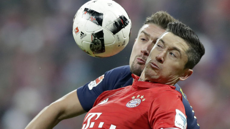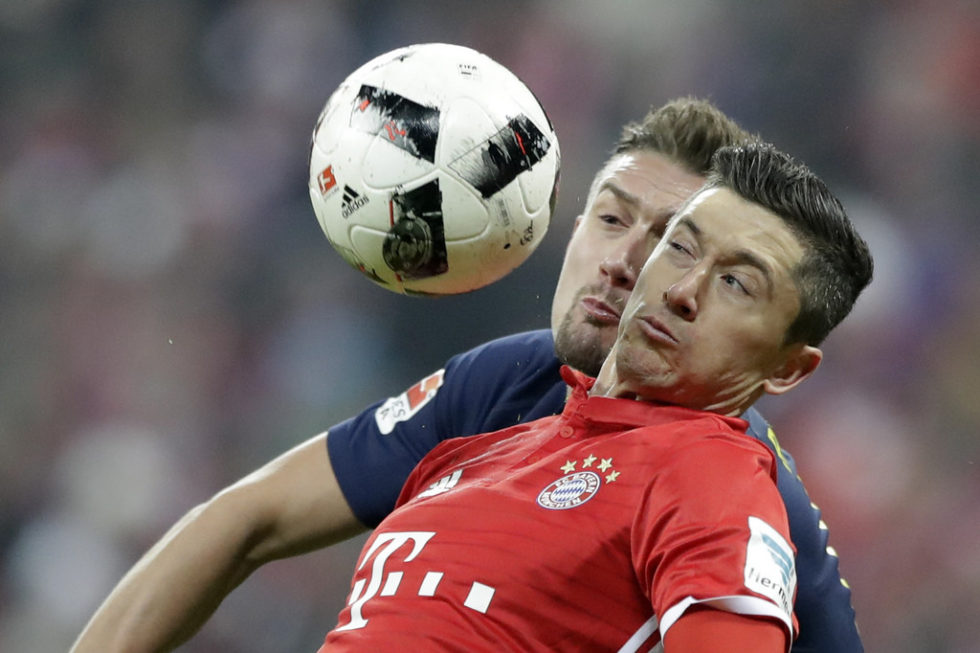 Dem Emporkömmling den Meister gezeigt: Robert Lewandowski, der seinen zwölften Saisontreffer zum 3:0-Sieg beitrug, gegen den Leipziger Stefan Ilsanker.