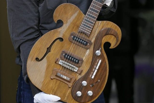 Nach Angaben des Auktionshauses Julien’s handelte es sich um eine seltene VOX Gitarre, die Lennon im Jahr 1967 «Magic Alex» Mardas, einem Freund der Band, schenkte. Harrison spielte auf der Gitarre unter anderem den Song «I Am the Walrus» während der Magical Mystery Tour.