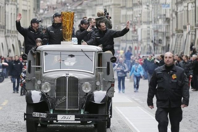 Der Tross, bestehend aus dem Staff, der Meistermannschaft sowie dem harten Kern der Anhänger, setzte sich am späten Nachmittag beim Bärengraben in Bewegung. Die Spieler genossen den Applaus, den sie auf dem Weg durch die Berner Altstadt erhielten. Die meisten hatten sich ihrer Playoff-Bärte entledigt.