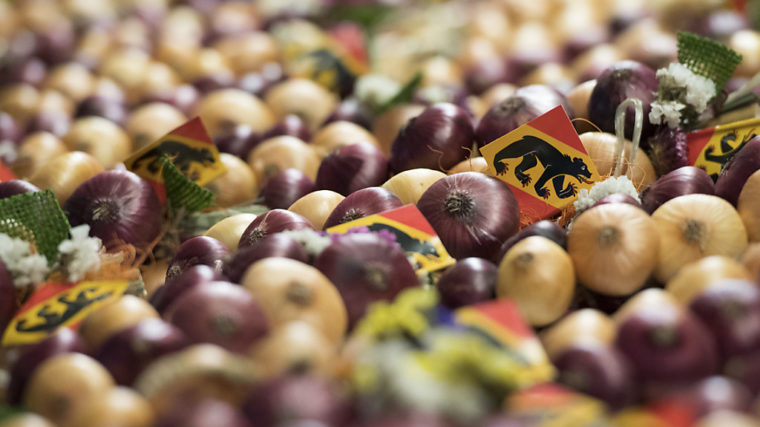 Tonnenweise Zwiebeln, kunstvoll zu Zöpfen geflochten, Glühwein, Konfetti und Knoblauchbrot: der Berner Zibelemärit hat am Montag erneut tausende Besucher angelockt. «Ehrengast» an diesem schönen, aber kalten Montagmorgen war eine «rässe» Bise.