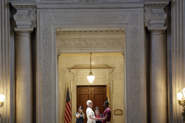 Die ersten Paare liessen sich noch am selben Tag trauen. Nur eine Stunde nach der Urteilsverkündung traute Harris im Rathaus von San Francisco Kristin Perry und Sandra Stier.