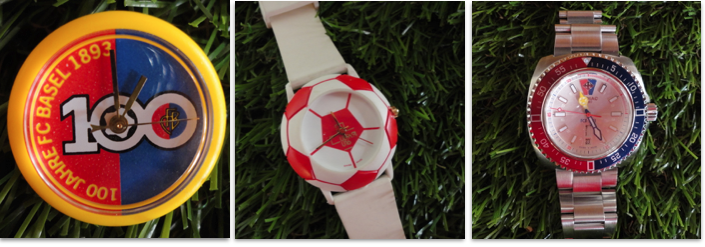 Zum Beispiel: Das Gastgeschenk der schottischen Nationalmannschaft an ihren Schweizer Betreuer anlässlich der Weltmeisterschaft 1954. Oder: Die Armbanduhr, die der Schweizerische Fussballverband SFV den Teilnehmern der U16-Europameisterschaft im Jahr 1991 überreichte. Dazu, aus schweren Zeiten des hiesigen Fussballclubs: Die limitierte Pinuhr, die 1993 kaufte, wer den notleidenden FCB unterstützen wollte. Schliesslich: Jene Armbanduhr, mit der der FCB über mehrere Jahre hinweg den Gewinner eines Pausengewinnspiel beglückte.