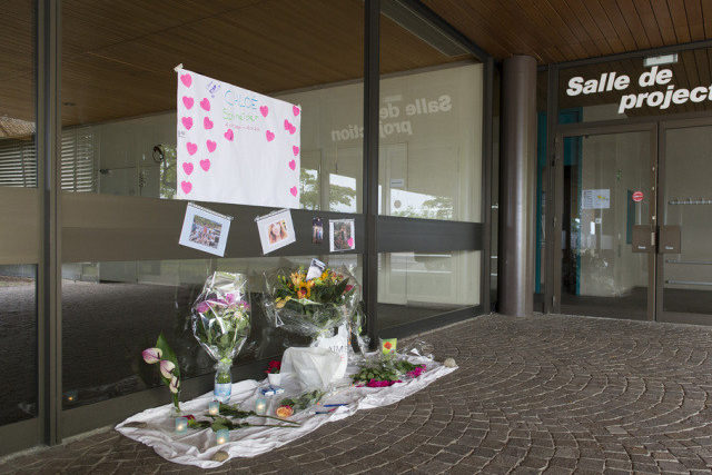 Vor dem Eingang des Schulhauses in Pully war am Sonntagmorgen ein weisses Laken ausgebreitet. Darauf hatten Trauernde Blumen abgelegt.