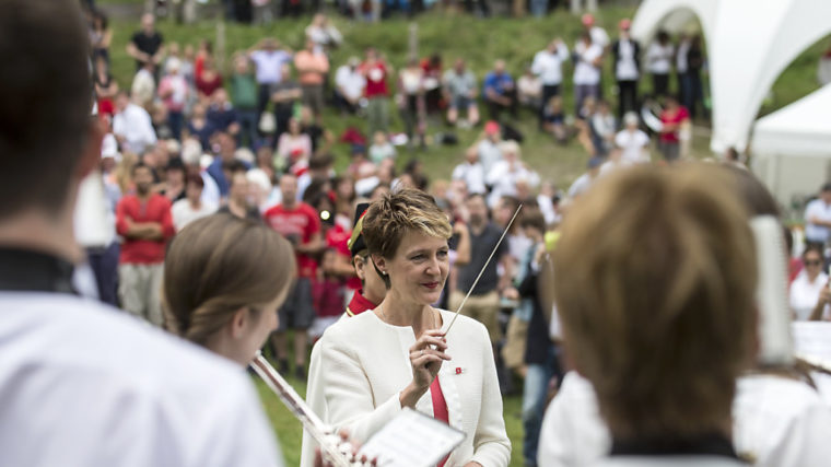 Bundespräsidentin Simonetta Sommaruga hat mit 1350 Personen auf dem Rütli den 1. August gefeiert. Sie hielt nicht nur die Festansprache, sondern dirigierte auch die Blasmusik, als diese die Landeshymne spielte.
