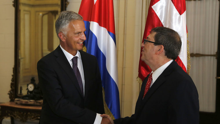 Zum Auftakt seines 24-stündigen Besuchs in Havanna hat Aussenminister Didier Burkhalter am Donnerstag seinen Amtskollegen Bruno Eduardo Rodriguez getroffen. Burkhalter ist der erste Bundesrat, der Kuba einen Besuch abstattet.
