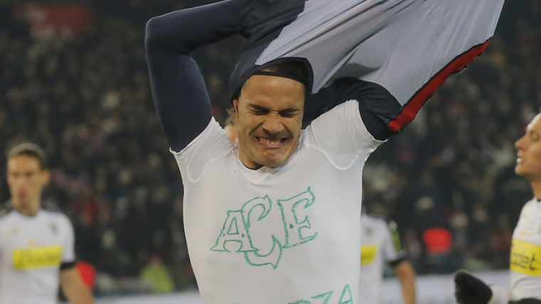 Uruguays Star Edinson Cavani erinnert bei einem Ligue-1-Spiel an die Flugzeugtragödie in Kolumbien – und kassiert dafür eine Gelbe Karte.