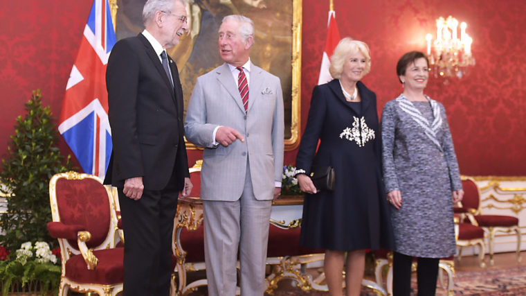 Der britische Thronfolger Prinz Charles und seine Frau Camilla sind auf ihrer mehrtägigen Europareise am Mittwoch in Wien eingetroffen. Das Paar wurde am späten Nachmittag vom österreichischen Bundespräsidenten Alexander Van der Bellen in der Hofburg begrüsst.