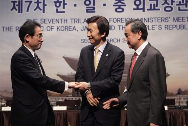 Südkoreas Aussenminister Yun Byung Se und seine Amtskollegen aus China und Japan, Wang Yi und Fumio Kishida, äusserten die Hoffnung, dass «der trilaterale Kooperationsmechanismus» wieder in Gang gesetzt wird.