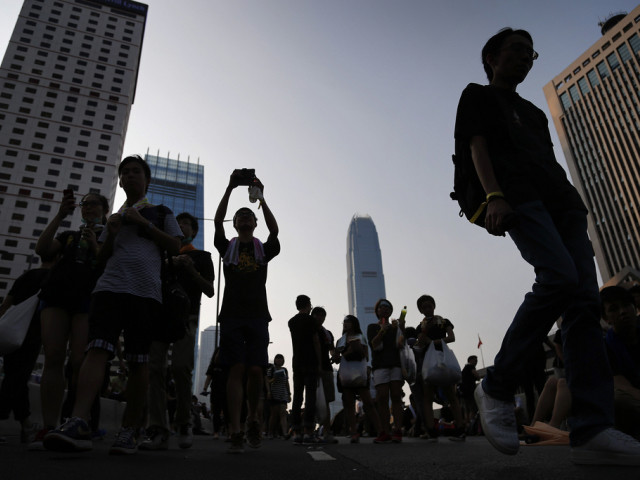 Zehntausende Demonstranten versperrten wichtige Hauptverkehrsadern im Bankenviertel in Central auf der Insel Hongkong und auf der Halbinsel Kowloon. Die Occupy-Central-Bewegung rief die Hongkonger auf, die Proteste so lange fortzusetzen, bis ihre Forderung nach mehr Demokratie erhört werde.