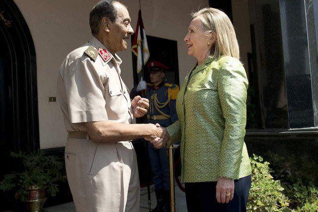 Nach ihrem Antrittsbesuch bei Ägyptens Präsident Mohammed Mursi hat sich US-Aussenministerin Hillary Clinton am Sonntag in Kairo auch mit Mohammed Hussein Tantawi, dem Chef des Obersten Militärrates, getroffen. Der Feldmarschall gilt wegen seiner grossen Machtfülle als zweiter Herrscher in Ägypten.