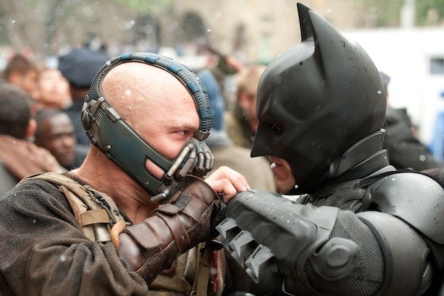 Schauspieler: Wie kommen bloss Michael Caine (Alfred), Gary Oldman (Commissioner Gordon) und Morgan Freeman (Lucius Fox) dazu, hier vor der Kamera Text aufzusagen? Christian Bale und sein Widersacher Tom Hardy gefallen mit Maske besser. Wir müssen sie dann aber trotzdem immer noch hören. (Wobei der eine eher wie Torhüter Tschech maskiert ist und der andere so eine Art Atemschutzmaske trägt, wie man sie Bodenlegern beim Parkett-Schleifen empfiehlt).