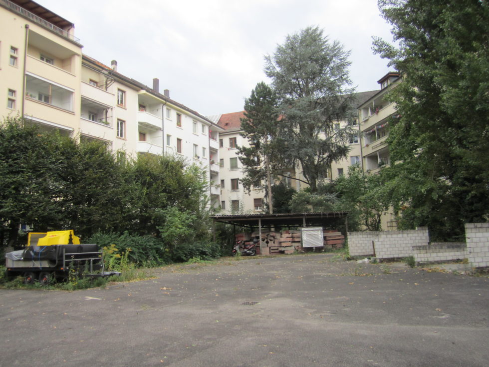 Im Geviert schräg gegenüber vom Eingang der Merian-Iselin-Klinik findet man beides. Ein langgezogener Wohnblock fügt sich erstaunlich luftig in die eine Hälfte des Innenraums. Die andere Hälfte teilen sich ein Schreiner- und ein Gipsergeschäft mit einem kleinen Bürogebäude. Dazwischen liegen einige hübsche Gärtchen, gemeinschaftliche Rasenflächen und Parkplätze. Die Parzellen sind strikt gegeneinander abgegrenzt: Eine tote Gebäuderückwand ist mit wildem Wein überwuchert, ein Maschendrahtzaun schneidet eine zerflickte Asphaltfläche entzwei, vernachlässigte Bepflanzung und brusthohe Mauern lassen nur gegenseitige Blicke gewähren. Es ist fast wie im Brocki: die Ecken, Kanten und Nischen in der Bausubstanz laden zum Stöbern ein.