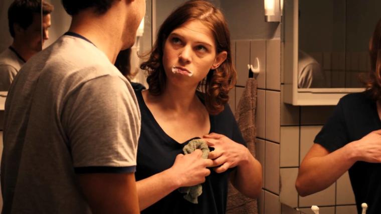 Erst sieht es aus wie ein Fehler. Die Kamera bleibt stehen, als hätte der Kameramann vergessen, zu schwenken. Der Ton des Kätzchens geht nahtlos in einen Kinderschrei über. Dann sitzt ein kleines Mädchen im orangenjusfarbenen T-Shirt vor einem Orangenjus und schreit lauter als eine Kaffemaschine, so dass es seine Mutter nicht verstehen kann. Sie bleibt dann auch viel länger im Bild, als die Handlung es erfordert hätte.
