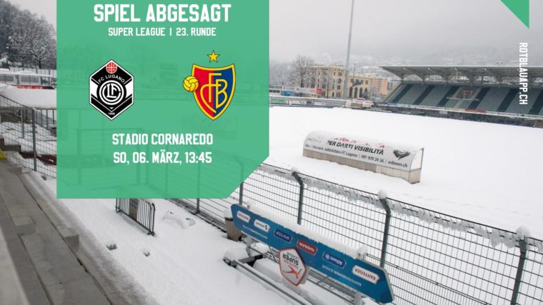 Aufgrund der heftigen Schneefälle im Tessin ist die für Sonntag, um 13.45 Uhr angesetzte Super-League-Partie des FC Lugano gegen den FC Basel am Samstagnachmittag abgesagt worden. Ebenfalls nicht gespielt wird in St. Gallen. Die Partie gegen GC, ursprünglich für Samstag, 20 Uhr, angesetzt, soll bereits an diesem Montag nachgeholt werden.
