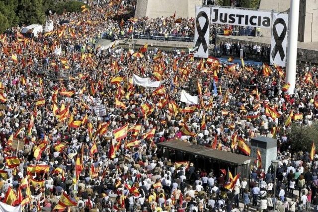 Sie sprach den Verdacht aus, man wolle «die Opfer zum Schweigen bringen» und damit einen Trumpf bei den Verhandlungen mit der ETA haben. «Aber wir werden nicht schweigen bis die Terroristen endgültig, komplett und total besiegt sind», rief Pedraza. An der Kundgebung nahmen unter anderem auch ranghohe Politiker der konservativen Regierung von Ministerpräsident Mariano Rajoy teil.