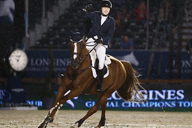 Als Letztstartende des Stechens, das neun Paare erreichten, toppte das blonde US-Girl die Bestzeit des Franzosen Patrice Delaveau noch um 33 Hundertstel und sicherte sich ein Sieggeld von 94’050 Euro. Delaveau wurde mit Carinjo Zweiter vor seinem Landsmann Kevin Staut mit Silvana.