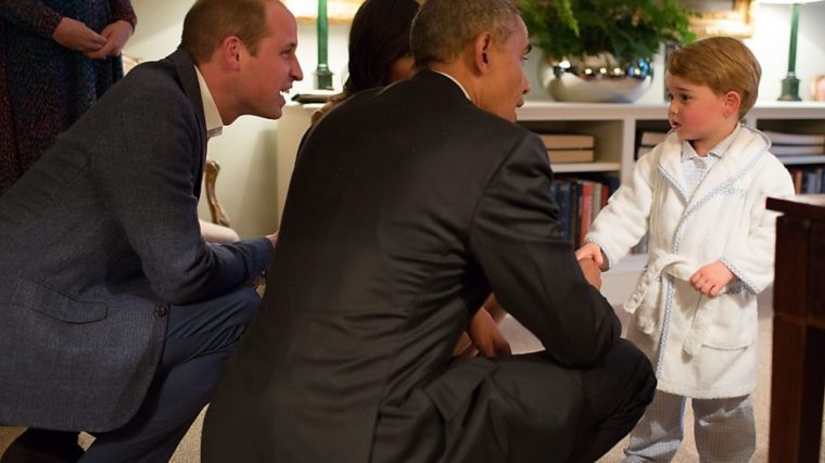 Der grosse Präsident aus Amerika ist zu Besuch – und der kleine Prinz George darf länger aufbleiben. Der zweijährige Knirps, Nummer Drei in der britischen Thronfolge, begrüsste US-Präsident Barack Obama im Londoner Kensington Palast.